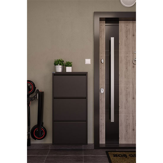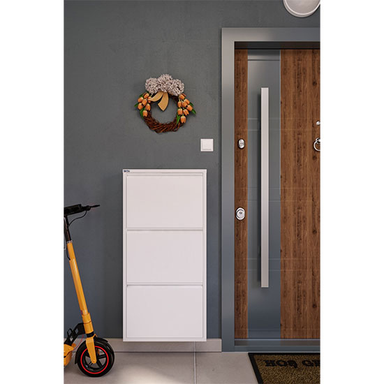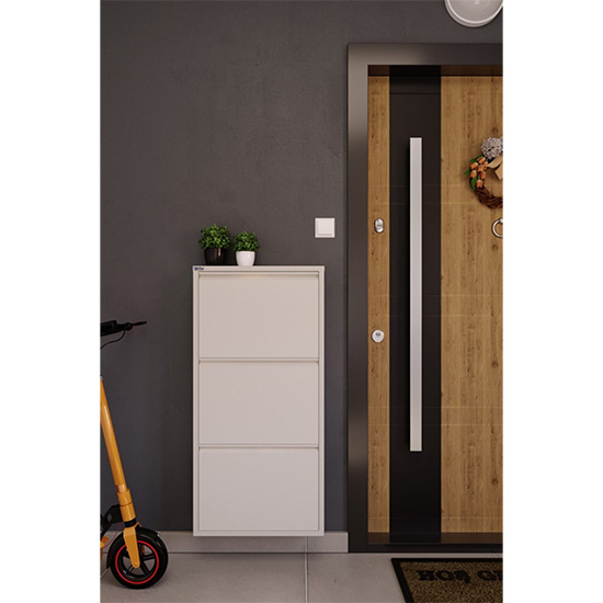 Metalni Cipelar Sa 3 Ladice sa svojim stilskim dizajnom daje drugačiju lepotu vašem domu. Zahvaljujući svojoj prenosivosti, proizvod možete koristiti gde god želite u i van vašeg doma. Metalni cipelar sa 3 ladice nudi higijenu za kojom tragate sa perforiranim modelom koji obezbeđuje ventilaciju. Ova osobina čuva vašu obuću od vlage i sprečava skupljanje ružnih mirisa. Sa 2 para obuće na svakoj polici vaša dnevna potreba je osigurana. Također, možete montirati proizvod na zid na rupama koje se nalaze pozadi ukoliko imate potrebu. Poklopci se zatvaraju sami od sebe pomoću magneta tako da se ne morate brinuti da će ostati otvoreni.