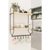 Wire Kuhinjska Zidna Polica, izrađena je od 100% prirodne sosine, visine 50cm i dimenzija 40×16cm, sa šest kukica za jednostavnu organizaciju. Sa rebrastim drvenim policama, Wire Kuhinjska Zidna Polica pruža moderan izgled i praktično rešenje za čuvanje čaša, šolja ili šoljica. Nema potrebe za montažom – jednostavno se postavlja i savršena je za kuhinju, kupatilo ili bar uglove u stanu.